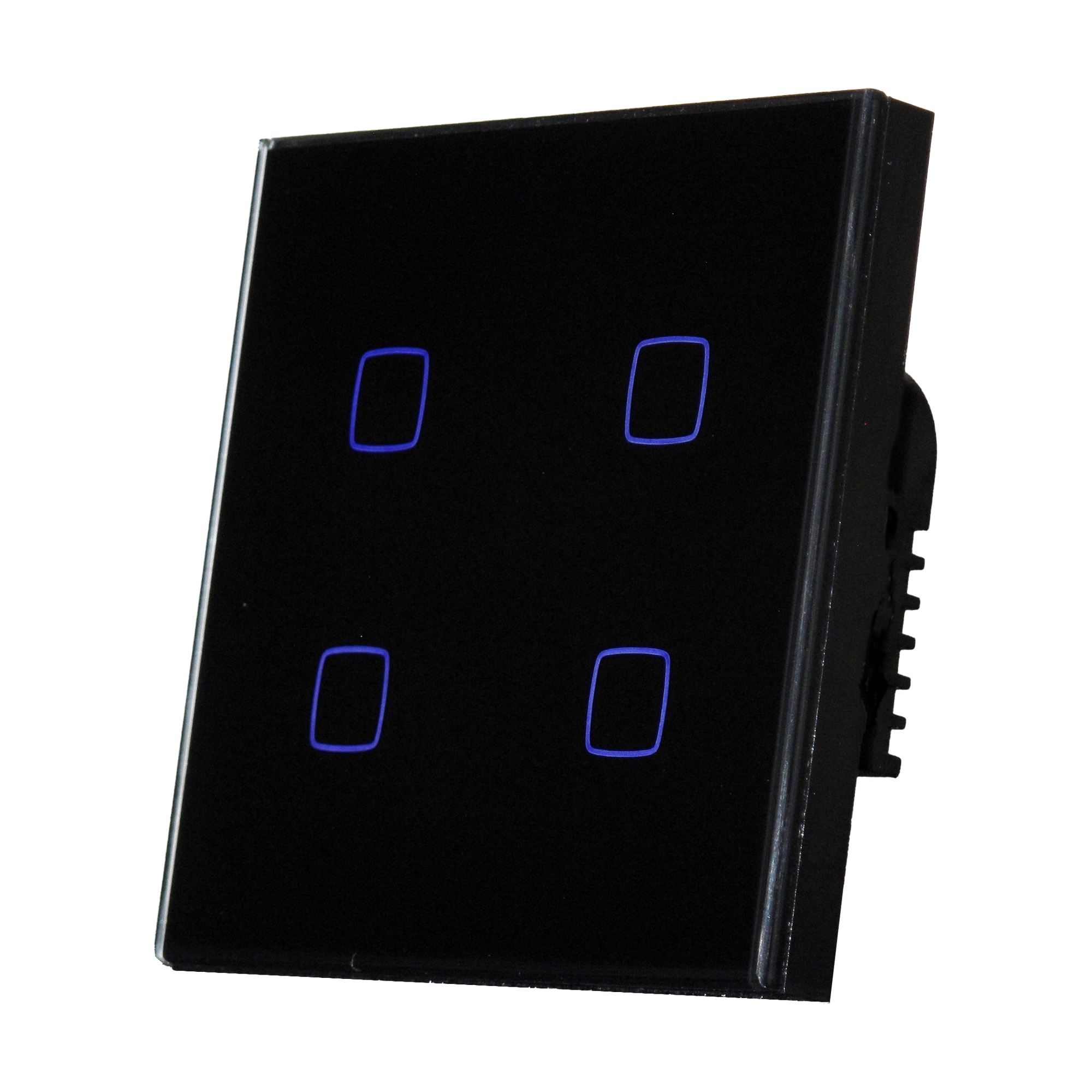کلید لمسی چهار پل مشکی قابل کنترل با ریموت RF433